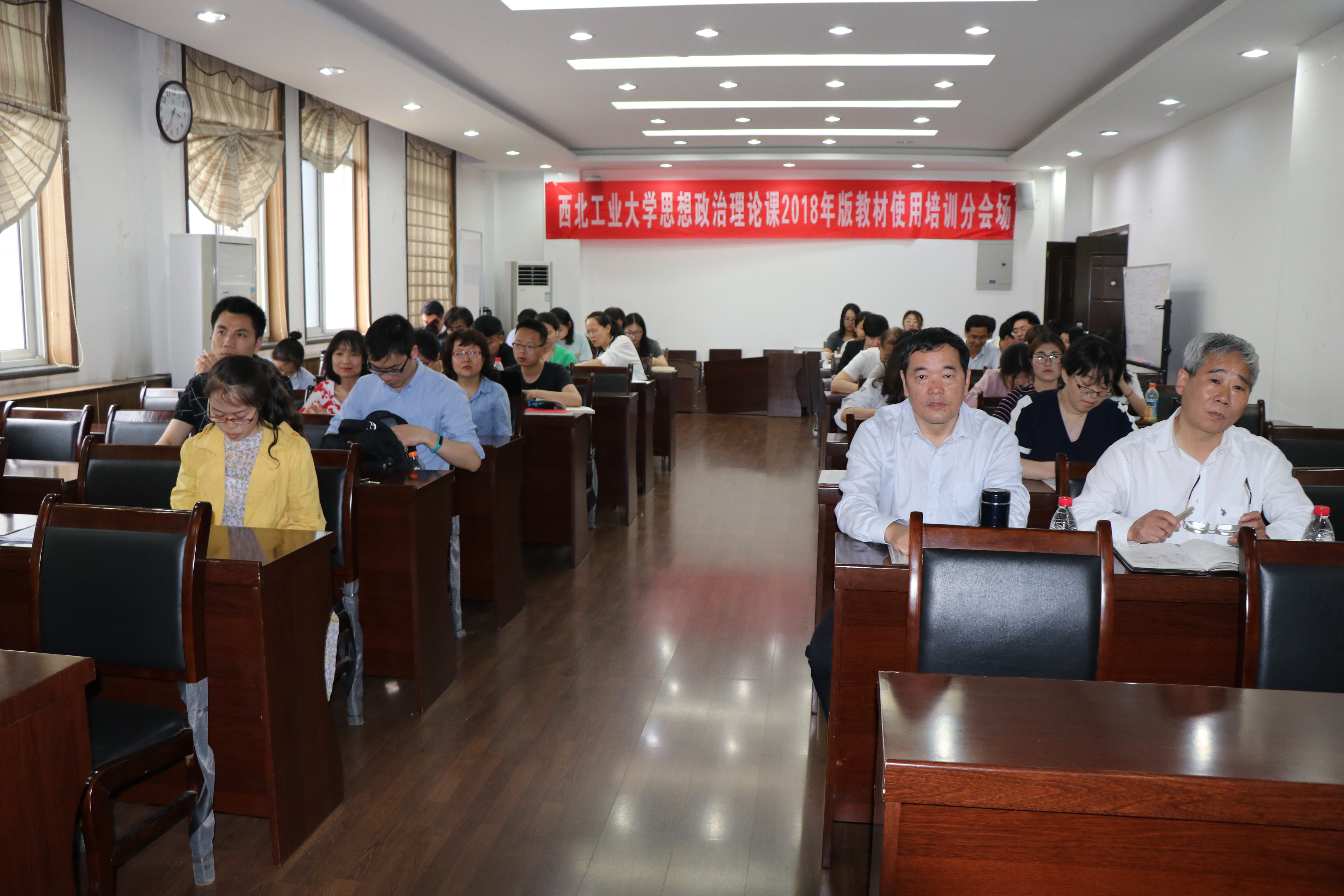 305报告厅与全院教师一同参加了教育部在京召开全国高校思想政治理论课2018年版教材使用培训班开班式的同步直播活动。