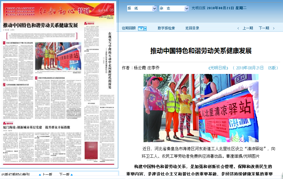 博士研究生庄季乔联合署名的理论文章《推动中国特色和谐劳动关系健康发展》。