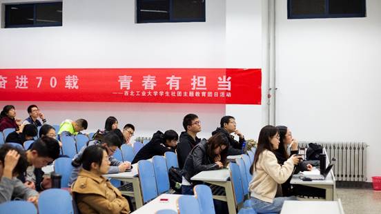 西北大学“红桅杆宣讲团”负责人王强以《以青春之我 创建青春之国家》为题,从历史故事讲起,为大家讲述了这100年来一代中国青年接力奋斗、凯歌前行的艰辛历程,并引用习近平总书记的故事及身边榜样西工大罗时钧教授的例子,告诉我们新时代青年应该思考如何接过历史的接力棒,以青春之我,创造青春之中国,新中国青年要好好践行习近平总书记在纪念五四运动100周年大会上重要讲话里的内容:第一,新时代中国青年要树立远大理想;第二,新时代中国青年要热爱伟大祖国;第三,新时代中国青年要担当时代责任;第四,新时代中国青年要勇于砥砺奋斗;第五,新时代中国青年要练就过硬本领;第六,新时代中国青年要锤炼品德修为。并援用李大钊名言,与大家共勉。