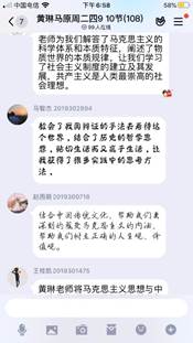 “停课不停学”,利用网络平台开展在线教学。为了顺利开展线上教学,提升课堂效率,黄琳老师开学前就进行了课程准备,多次备课、试讲、调试课程平台,并且创新的思政教学方式,在授课中实现了良好的课堂效果。