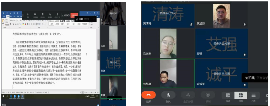 杨冰郁老师、陈诚平老师以及10多位硕博生共同参加,以《路德维希·费尔巴哈和德国古典哲学的终结》第三章作为研读篇目,展开了交流与讨论。