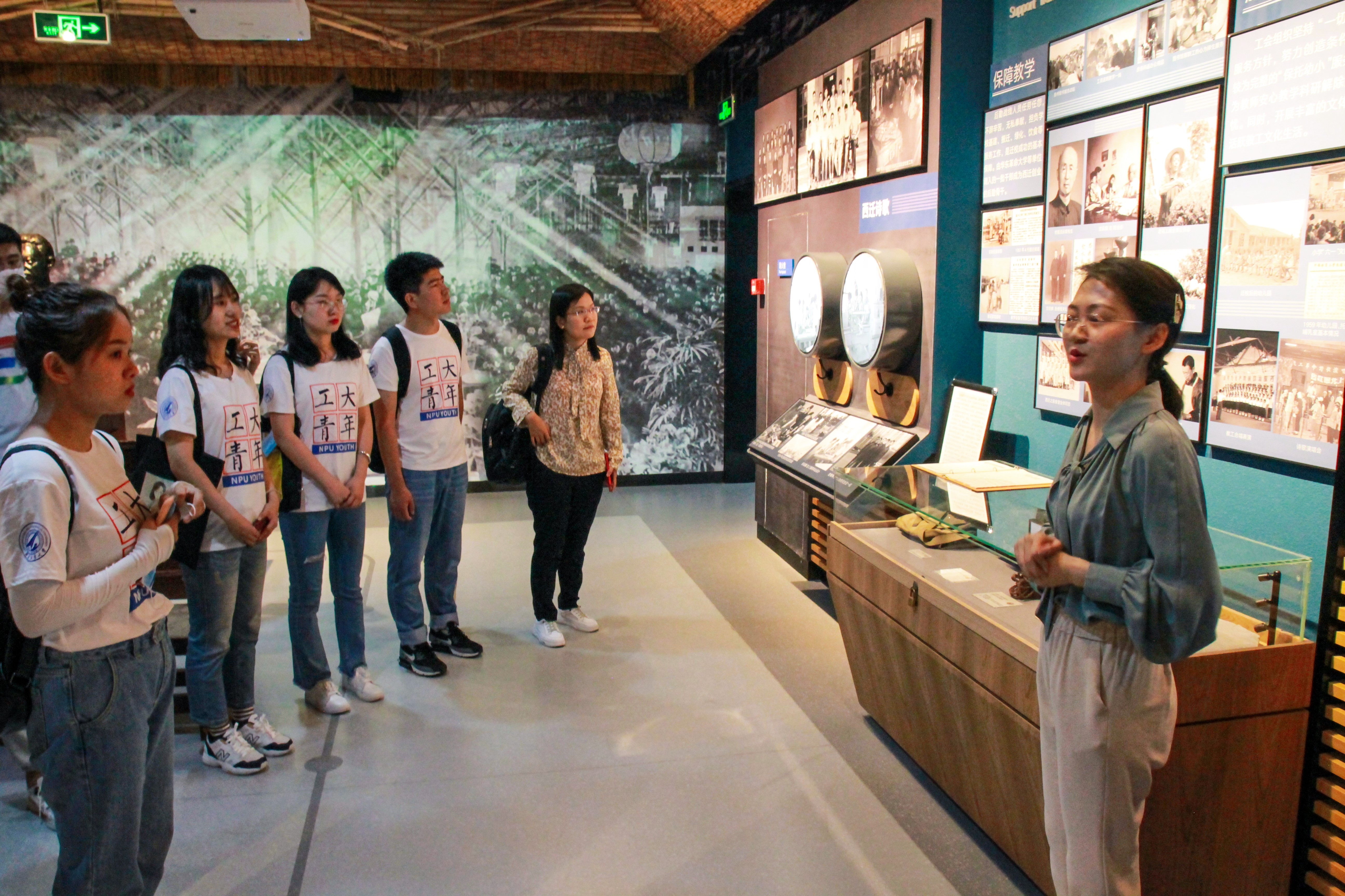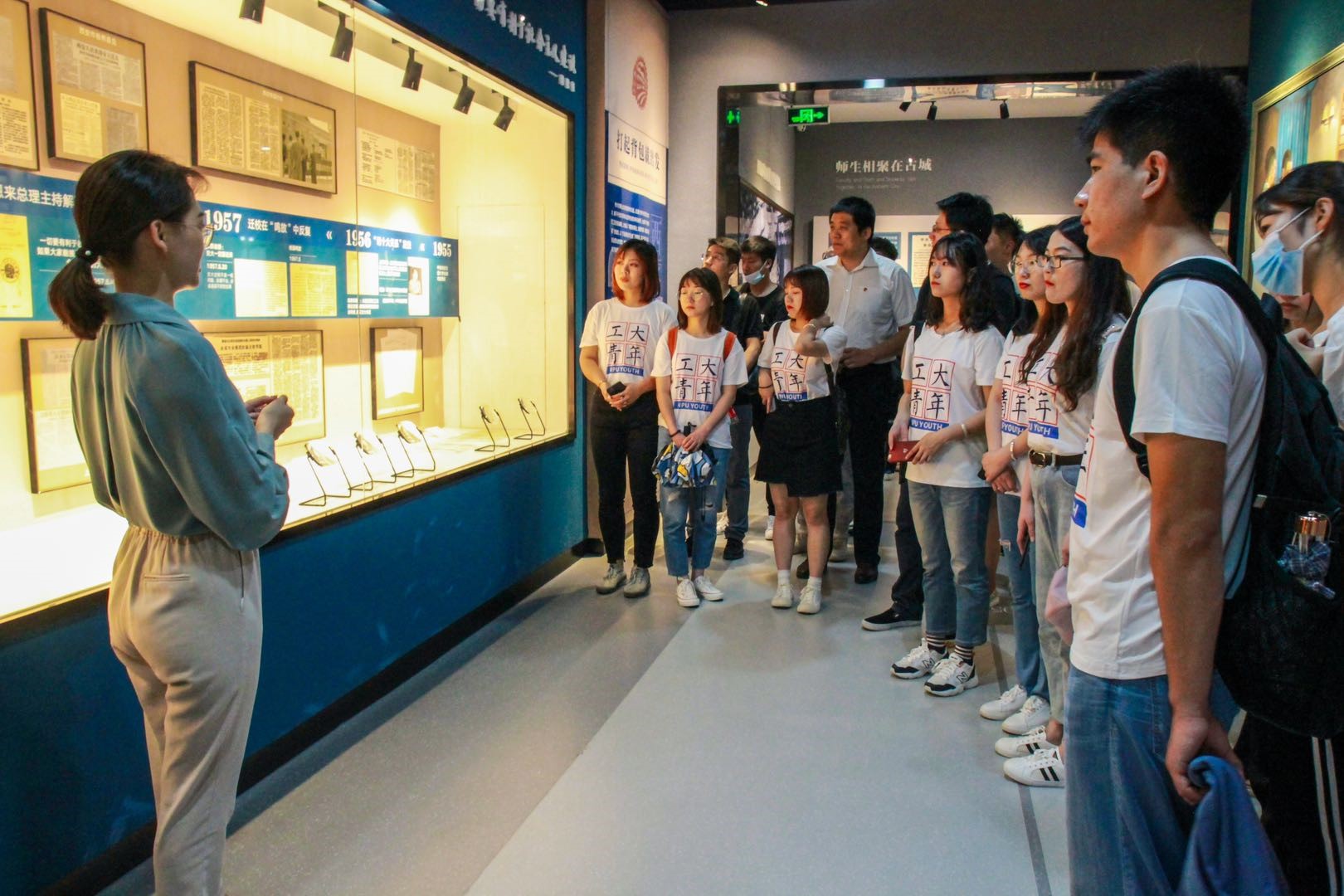 图为青马实践队队员在讲解员的带领下,学习了解西迁历史博物馆
