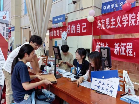 的迎新点已经开始忙碌了,高挂的横幅、飘扬的气球、崭新的引导牌、早已提前调试准备好的核验机器、脸上洋溢笑容的志愿者,迎新点的每一帧画面都呈现出热情、愉悦、欢迎、美好。