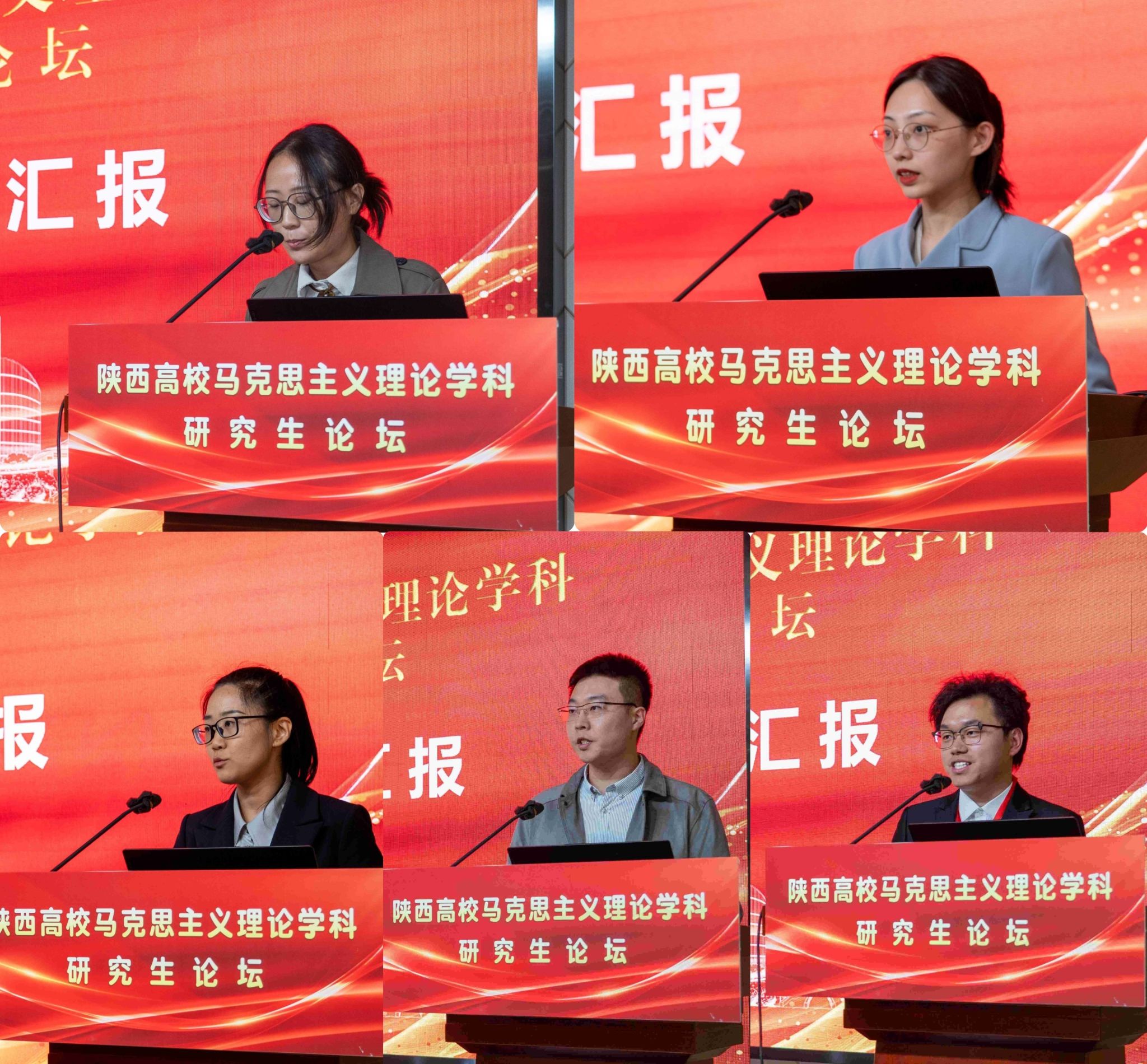 研究生秘书肖妮主持。中国矿业大学韩硕、西北大学韩一玮、西北工业大学王瑶光、陕西师范大学林诗昊和北京大学喻伟代表五个分论坛作学术总结汇报。熊成帅副教授作为点评教师代表发言,他对各位研究生的精彩汇报表示肯定,并提出学术研究要注重文献阅读和强化问题意识。
