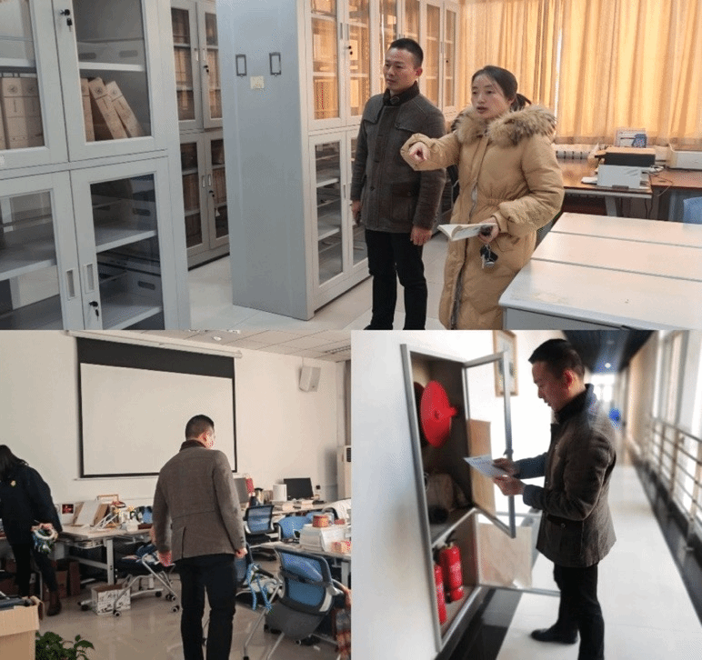 楼会议室、档案室、图书资料室、自习室、办公室以及楼道区域的卫生状况、排除了室内用电安全隐患。