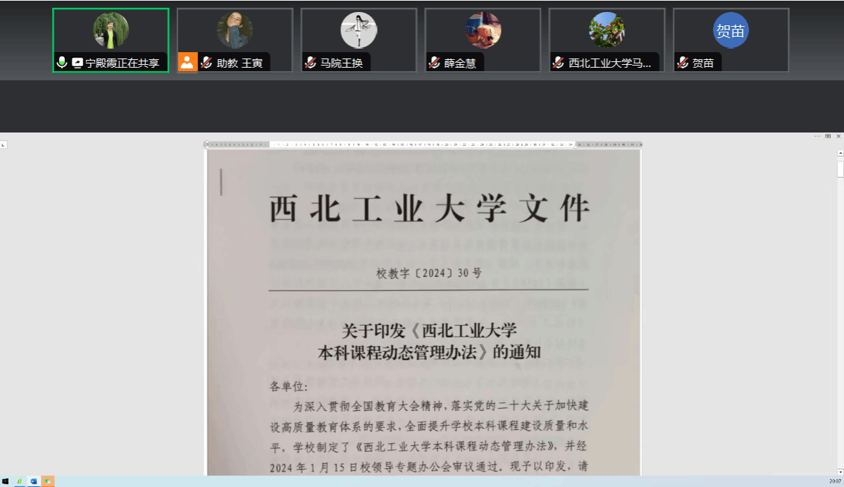 随后,《概论》课教研室主任宁殿霞副教授就关于印发《西北工业大学本科课程动态管理办法》的文件与各任课老师围绕总则、动态管理对象、课程建设与开设管理、课程过程管理、预警与退出机制等内容进行集体学习。本次学习有利于任课老师们深入贯彻全国教育大会精神,落实党的二十大报告关于加快建设高质量教育体系的要求,全面提升电玩城游戏