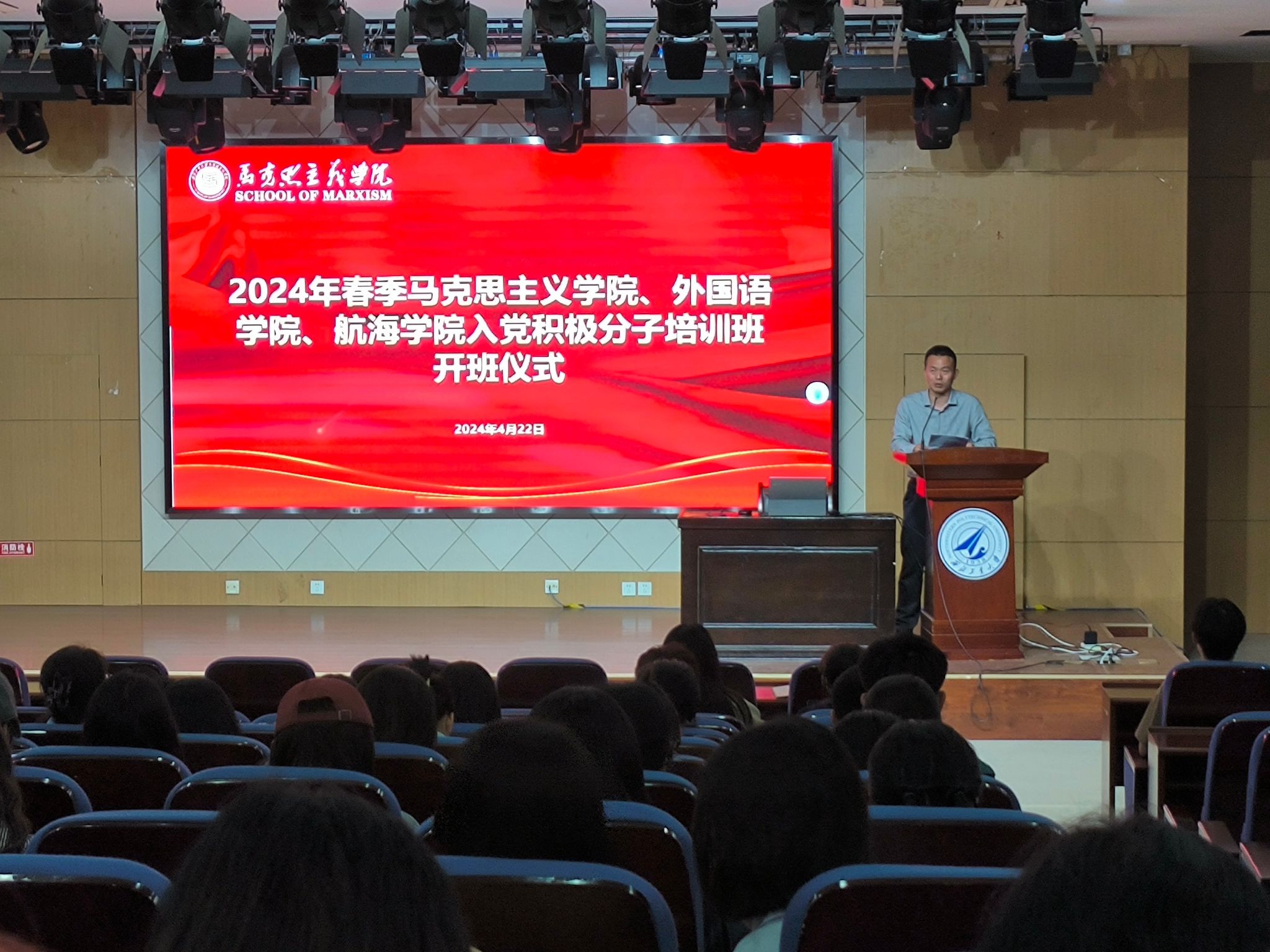 联合举办的入党积极分子培训班开班仪式上,为师生们讲授党纪学习教育专题党课。