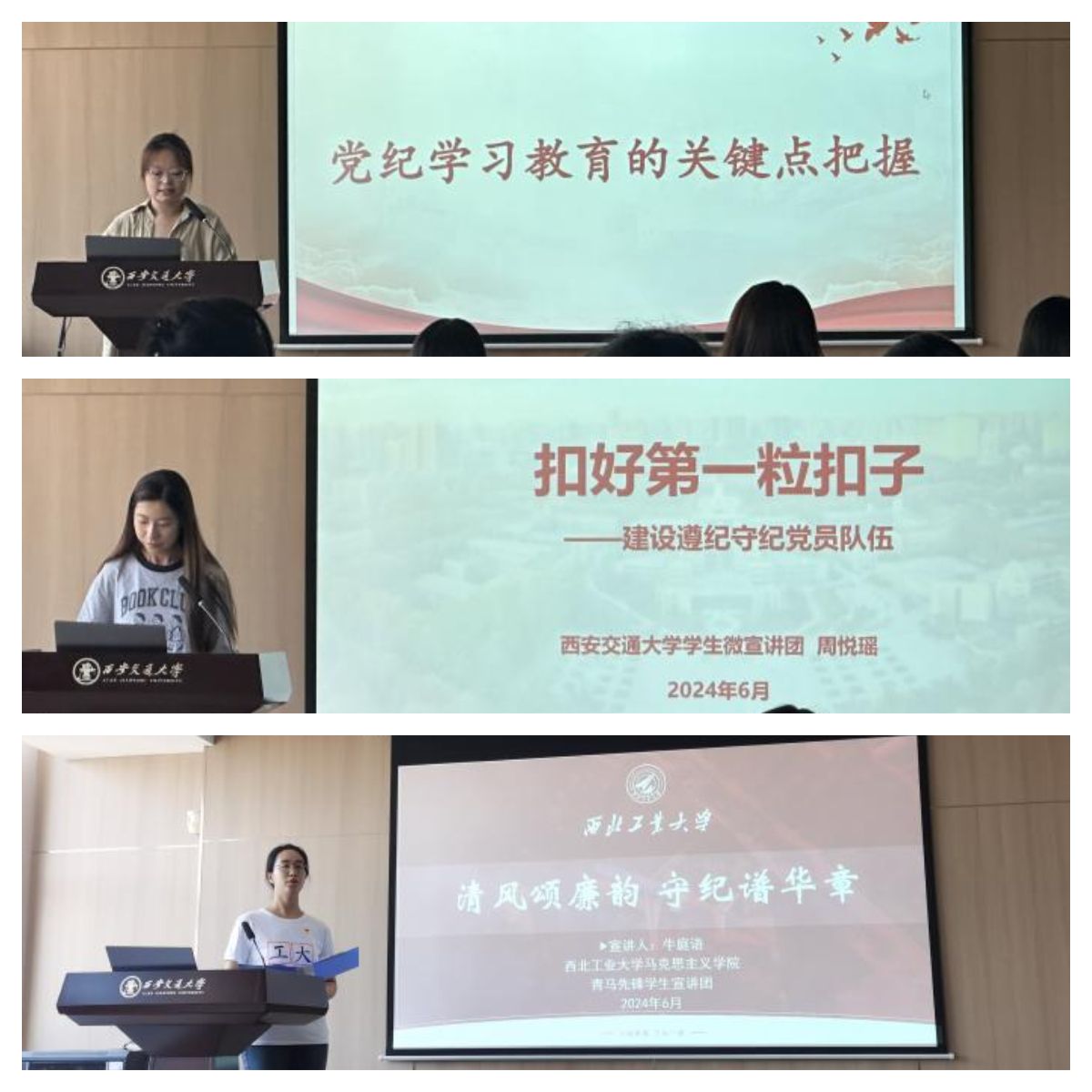 郭白雪同学从关键点把握、西农建设和廉政教育的人文特色实践三个方面为大家介绍了西北农林科技大学在党纪学习教育上的具体实践;西安交通大学学生微宣讲团周悦瑶同学为大家带来了《扣好第一粒扣子——建设遵纪守纪党员队伍》的宣讲,通过多个代表性案例呈现中央八项规定精神于点滴之间激浊扬清,充分反映了全面从严治党永远在路上;电玩城游戏开放的电子游艺场所,亦称电子游戏机室