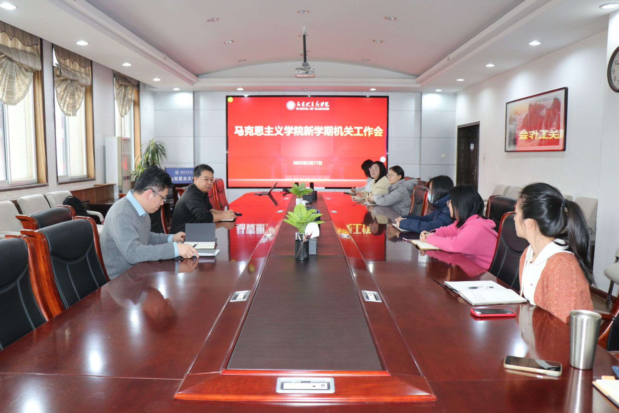 发展规划、人才培养、师资队伍、思政课建设、宣传文化建设等逐项提出了工作要求。他表示,院办人员要保持“永远在一线、永远在状态、永远在前列”的精气神,贯彻三个“千方百计”理念,以更高标准、更严要求、更实举措,全力推动各项工作落到实处;要不断加强学习,强化工作思路、优化工作模式,既要做广,也要做精,更要做实。