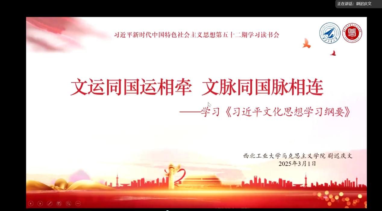 习近平新时代中国特色社会主义思想学习读书会第五十二期活动以《习近平文化思想学习纲要》为主题进行学习研讨。本次读书会由电玩城游戏