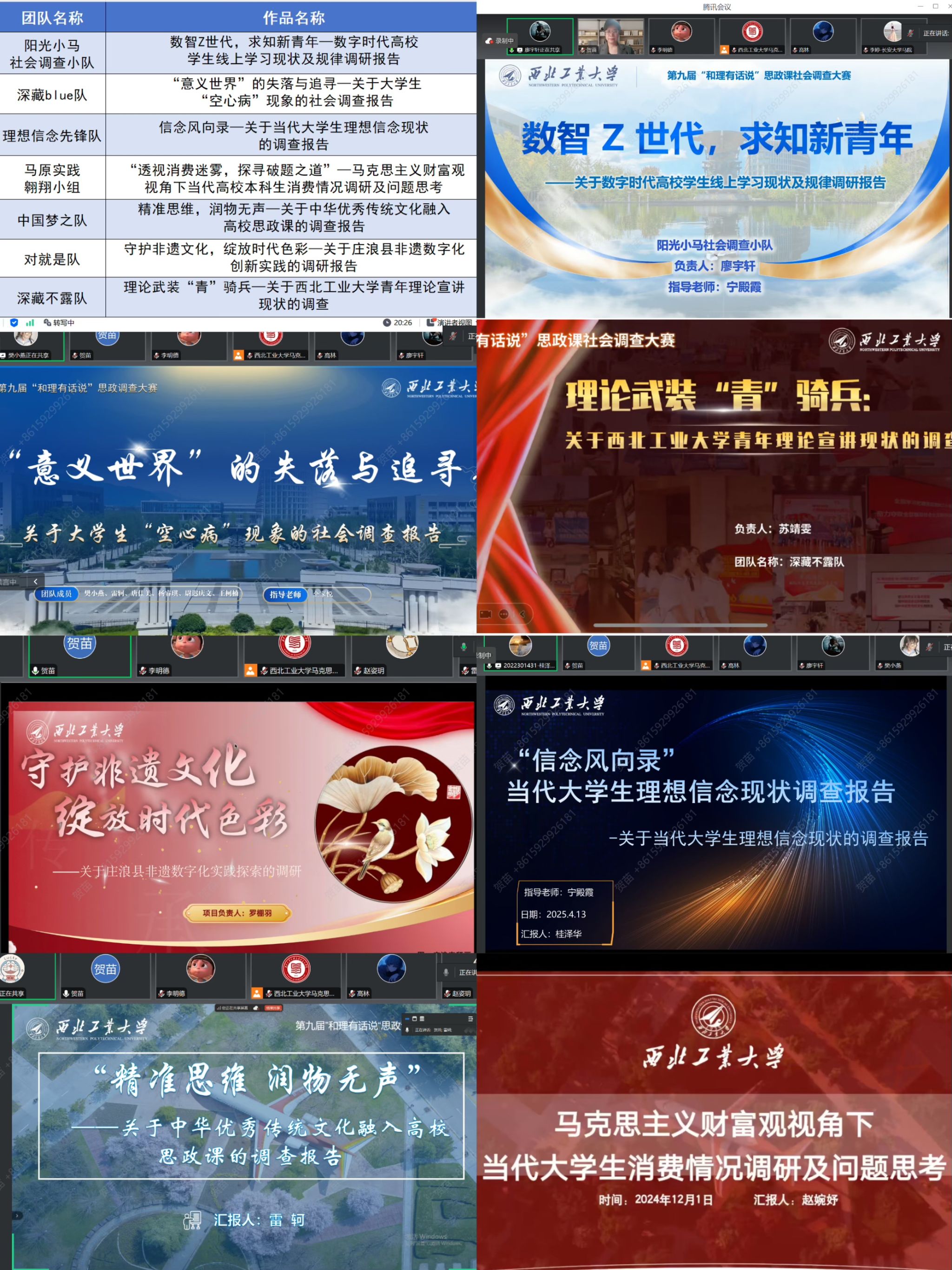 、西北工业大学陕西省重点舆情信息研究中心联合举办的第九届“和理有话说”思政课社会调查大赛暨成果展示通过线上形式顺利举办。会议邀请到西安交通大学李明德教授、长安大学李婷教授、西北工业大学党委学生工作部副部长、学生处副处长管峻担任评审专家,会议由电玩城游戏