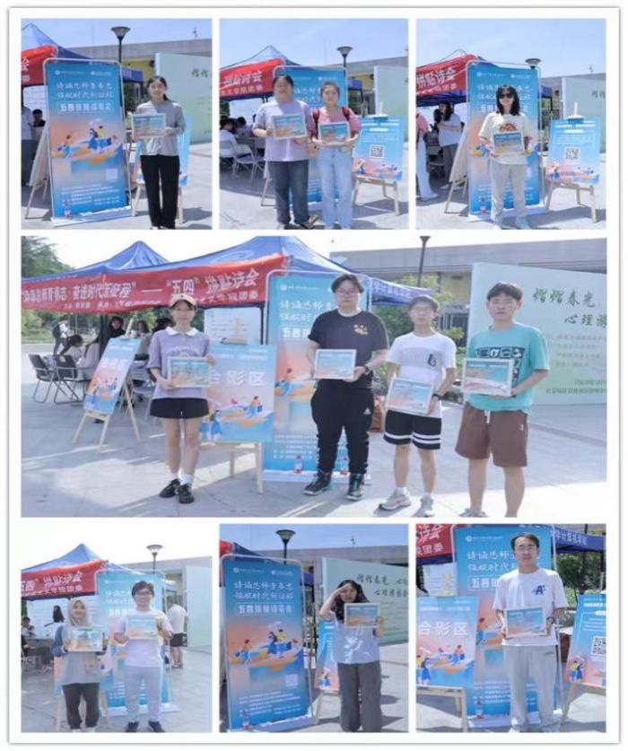 特色(如“总师育人文化”“创新精神”等相关短句),体现西工大学子对五四精神的价值思考和当代传承。完成拼贴后,将所有作品集结为展板并合影留念,形成整体性成果。