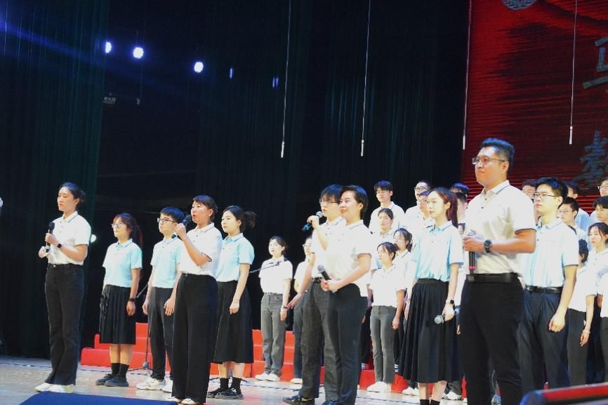 副院长贺苗、党委副书记耿云辉共同登台,以铿锵如金石、深情似涓流的朗诵融入合唱声浪。四位老师饱含深情的朗诵,深情礼赞了平凡奋斗者汇聚的磅礴伟力,极大地鼓舞了在场师生。