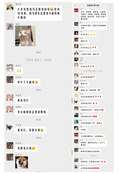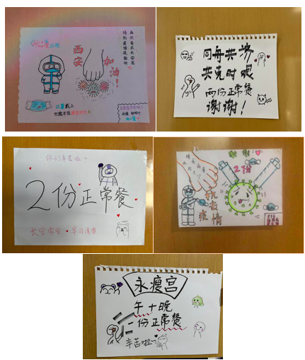 迅速成立工作小组,学生干部驻扎云天苑D座,开展相关工作,在同学们的配合下,各楼层组织志愿者,建立联系群,保证送餐工作有序开展。