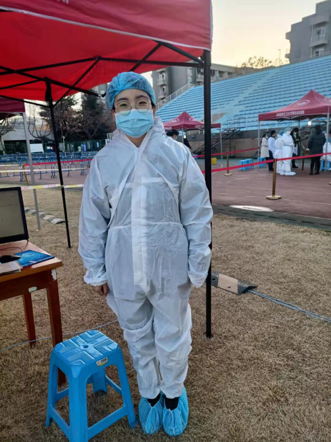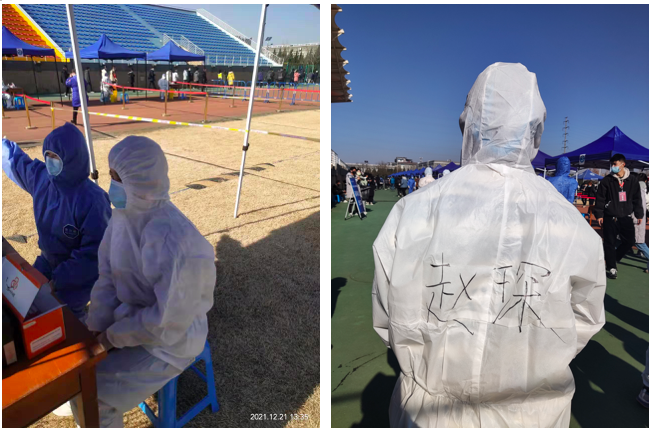 (图为曹奥琪同学参与核酸检测和研究生考试专项志愿服务)