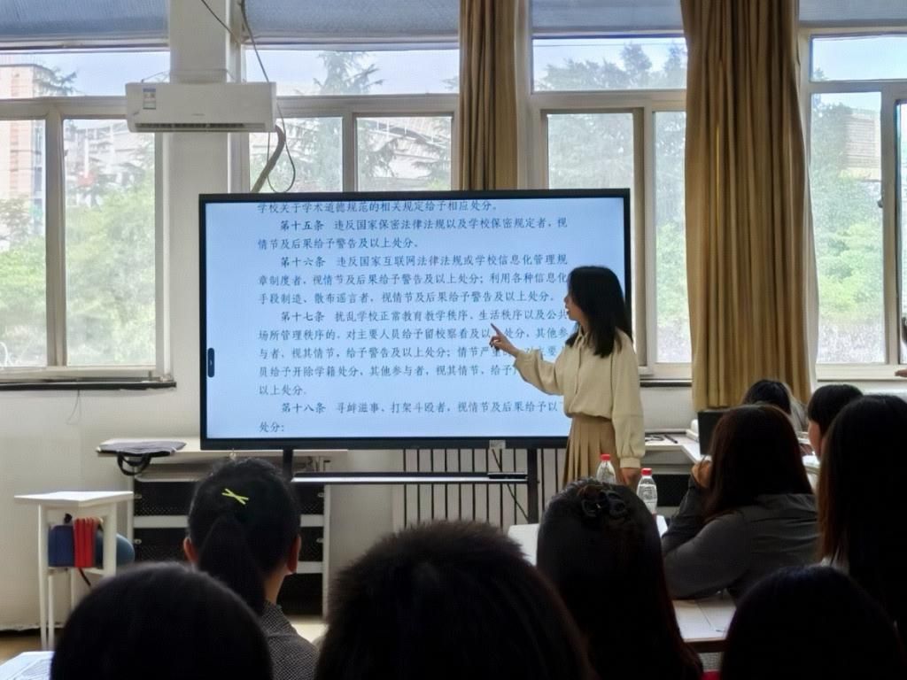 规章管理制度为新生讲解研究生日常管理规定和违纪处分实施细则。最后,25218-01班和25218-02班分班讨论了班级事务。