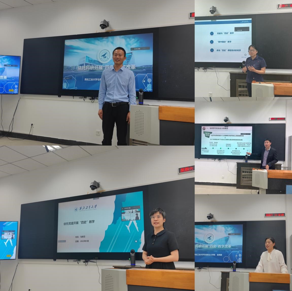 在教研分享环节,《新中国史》课程负责人马新蕊副教授做了依托党建开展“四史”教学的分享,指出以支部建设为契机,推动”四史“教学、科研、社会服务等功能于一体,以习近平总书记大历史观为根本遵循,准确把握新中国史的主线,积极回应学生关注,及时纠偏。《社会主义发展史》课程负责人山磊助理教授做了课程思政与思政课程协同推进“四史”课程建设的分享,认为只有通过全方位引入思政育人要素,使广大本科生在学习专业课程的同时,正确认识社会主义发展的历史主题、历史脉络、历史规律,牢固树立对马克思主义的信仰、对共产主义和社会主义的信念。《中共党史》《改革开放史》课程负责人赵海霞副教授,对“四史系列课程”教学团队依托科研开展课程建设情况,存在的问题及以后的教学工作规划进行分享,认为“四史”系列课程教学离不开教师们对相关内容的研究,教师需坚持历史审视与现实观照相关联,进一步加强四史相关的研究,持续挖掘思想政治理论背后的历史文化底蕴,持续拓展话语边界,切实提升思政课教学的实效性。电玩城游戏