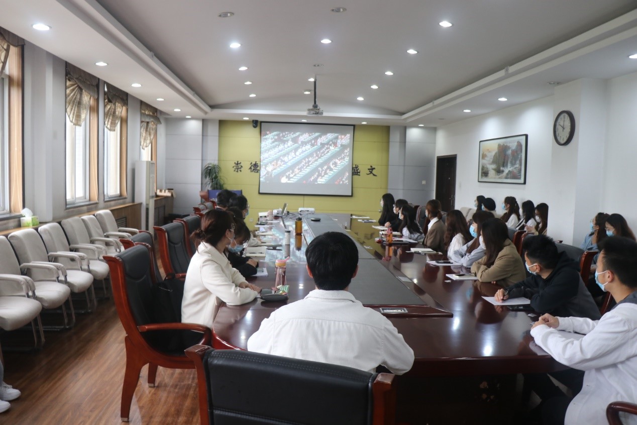党委副书记李刚、团工委书记王换与同学们一同观看直播。