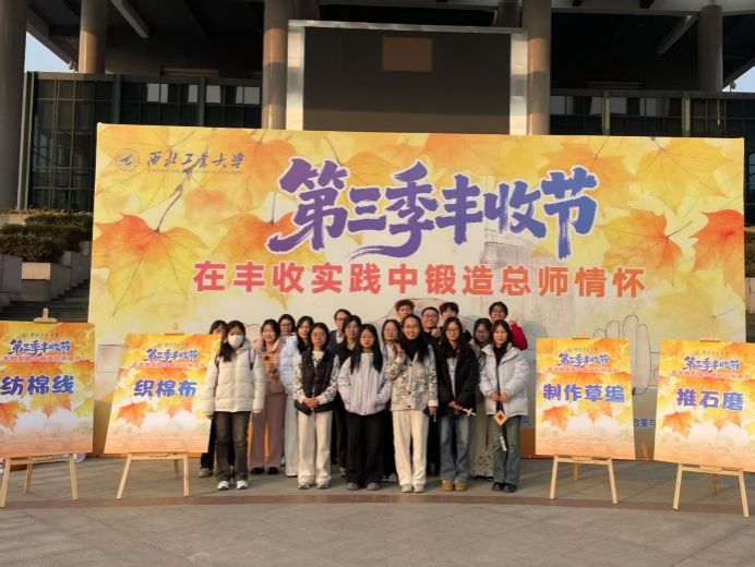 作为协办单位在本季丰收节组织沉浸式红色生产技艺体验环节。活动现场引导同学们学习使用传统劳动工具,纺棉线、推石磨、制草编、织棉布,在劳动中感受先辈“自己动手、丰衣足食”的革命奋斗历程与独特智慧。