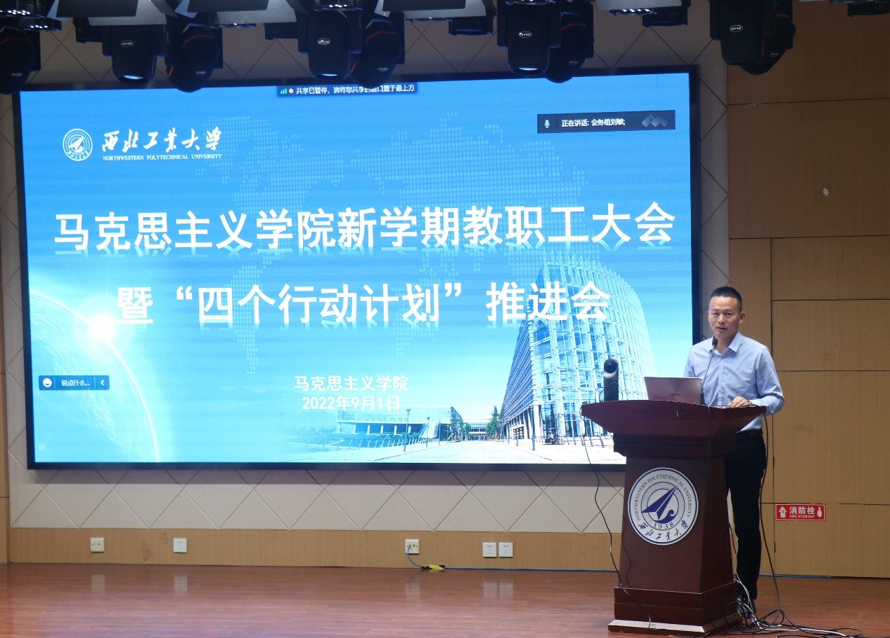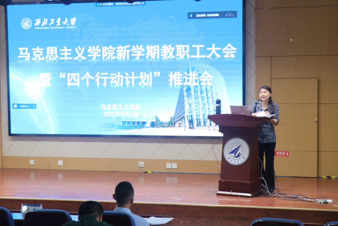 贺苗副院长围绕思想政治理论课改革工作进展及近期工作安排做了简要介绍和总体部署。她指出,讲好思政课是马院教师的看家本领,持续推进“大思政课”建设,上好思政课意义重大。要落实好各类人员进课堂,同抓一堂思政课;要不断将最新的实践成果融入到课堂教学中;要依托网络平台,加强智慧思政课程建设;各位老师要提高政治站位,加强“底线思维”,高度重视,形成共识,凝聚合力,持续推进“大思政课”建设。