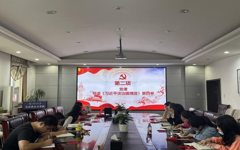 党支部书记王慧新同志带领全体党员学习《习近平谈治国理政》第四卷,从总体框架、重点篇目、悟透原理三部分进行了深度解读,并将每一部分深入展开,对支部成员提出要求,要坚持读原著、学原文、悟原理,进一步深化对习近平新时代中国特色社会主义思想的认识理解把握,做到真学真懂真信真用。