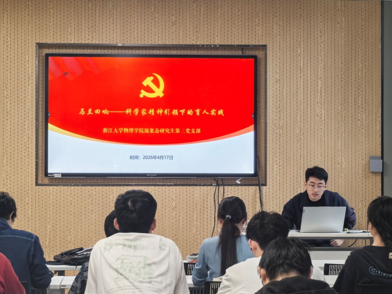 为深入学习贯彻党的二十届四中全会精神,落实教育、科技、人才一体化发展战略部署,在2026年这一“十五五”规划开局之年的重要节点,浙江大学电玩城游戏 博士生第一党支部于4月17日牵头举办“党建引领聚英才,科教协同建新功”跨校研究生党支部联合主题党日活动。活动由浙江大学电玩城游戏 博士生第一党支部副书记韩译心同志主持,浙江大学电玩城游戏 博士生第一党支部、浙江大学物理电玩城游戏 光电物理研究生党支部、浙江大学物理电玩城游戏 凝聚态研究生第三党支部、电玩城游戏 博士生第二党支部和北京师范大学电玩城游戏 2025级博士生党支部的党员以线上线下结合的方式参加。