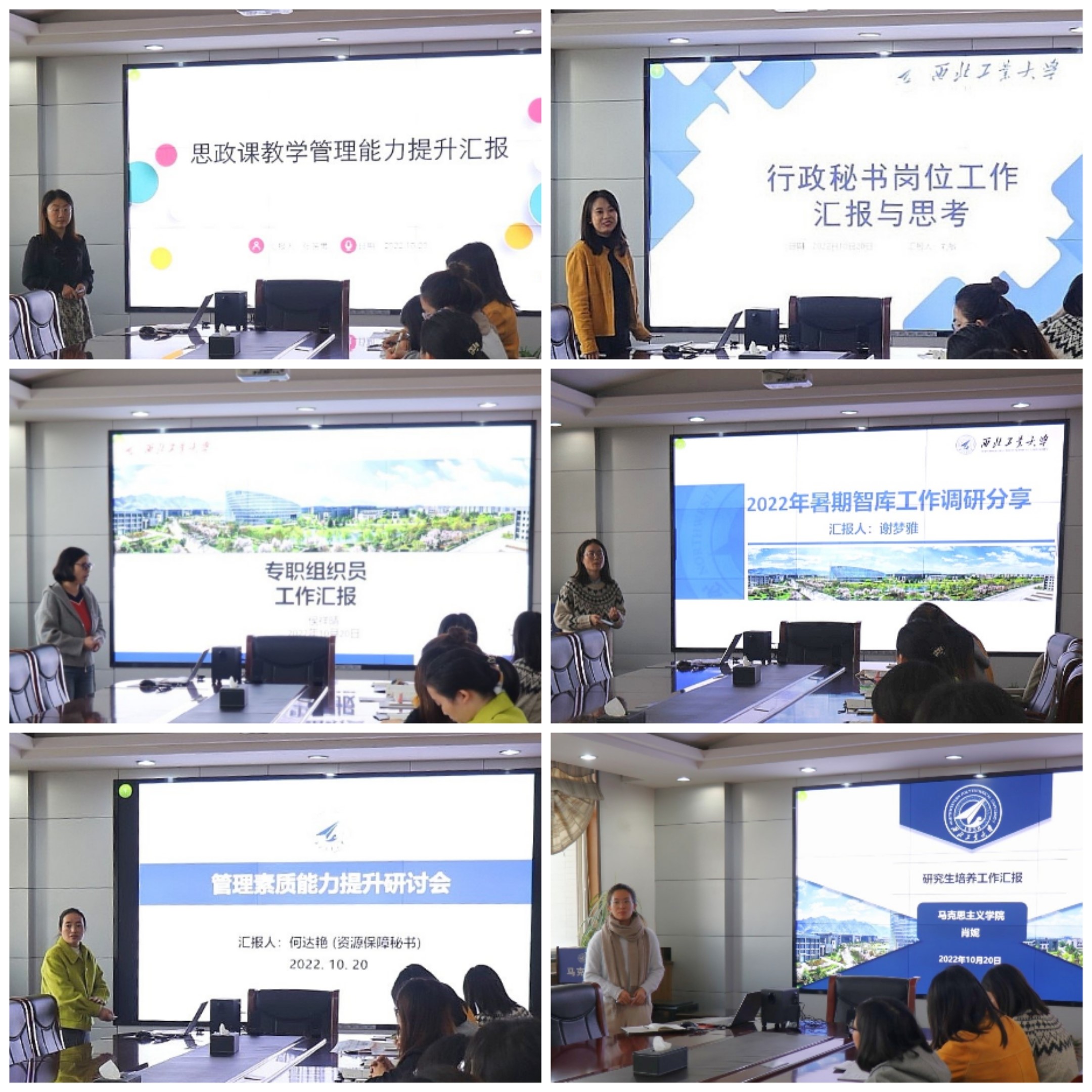 思政公共课开展情况进行了梳理并与调研高校进行了对比分析。行政秘书刘敏从行政秘书特点和定位出发,阐释了如何在工作中贯彻落实岗位育人。党务秘书(专职组织员)侯祥晴详细梳理了电玩城游戏