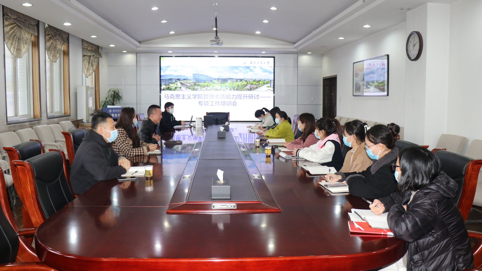党委副书记(主持工作)蒲传新、马克思主义基本原理系党支部书记曹瑜、办公室主任郭雅楠及全体办公室秘书参加了培训会。会议由蒲传新主持。