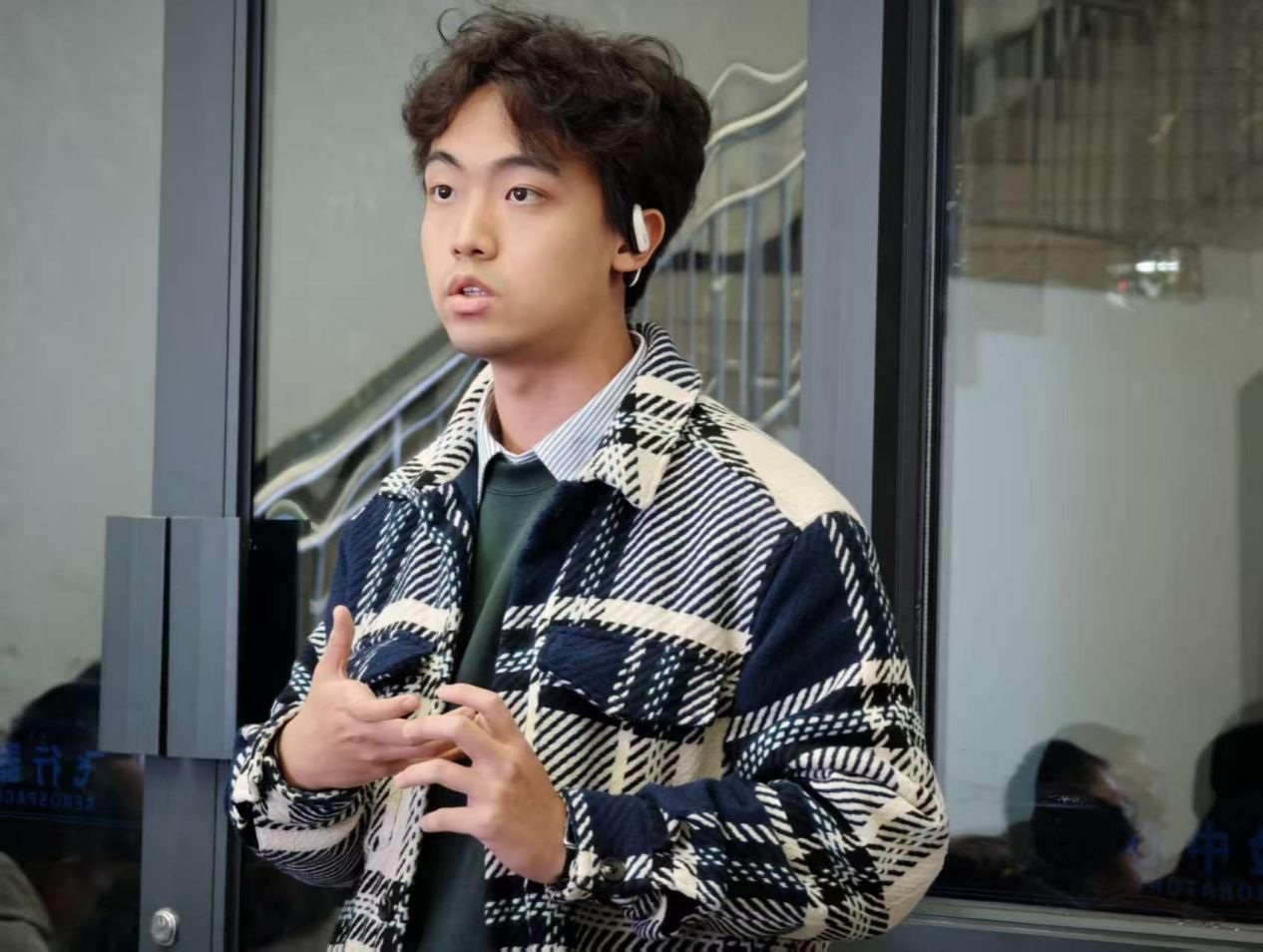 宋思瑜:贾老师以深入浅出的讲解和形象比喻,避开晦涩公式,将航空发动机这一飞行器“心脏”的工作原理、核心部件协同逻辑拆解开来,让原本抽象的专业知识变得清晰易懂,让我对压气机增压、燃烧室能量转化等关键机制有了透彻认知。最震撼的莫过于推力45公斤涡轮发动机的整机试验。引擎启动时,轰鸣震彻全场,蓝色火焰从尾喷口稳定喷薄而出,转速表跳动的数字直观展现着澎湃动力。这一刻,书本上的理论知识瞬间转化为可感可知的磅礴力量,让我真切领略到“动力之美”。