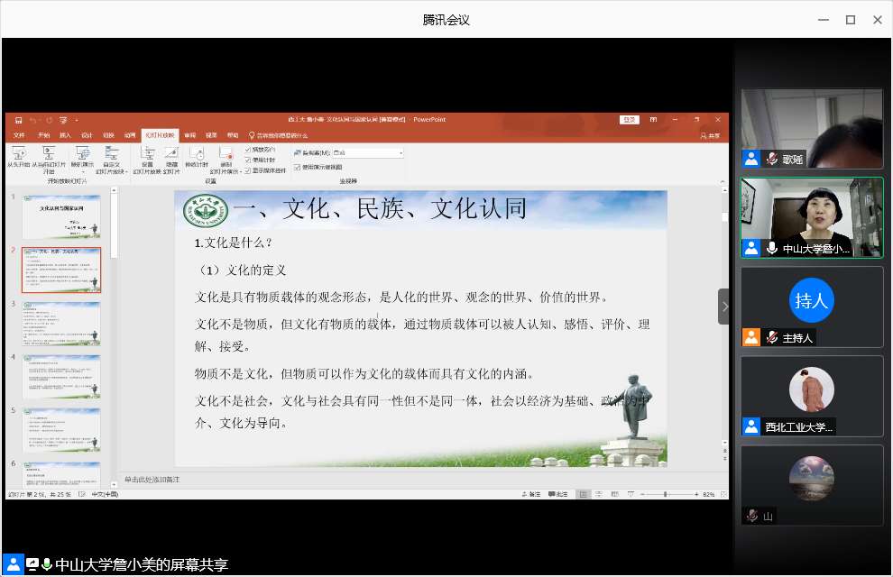 2020年7月1日,在建党99周年的特殊时刻,电玩城游戏 学工部和电玩城游戏 特邀中山大学詹小美教授在云端做客电玩城游戏 “翱翔名家讲堂”,进行“文化认同与国家认同”的学术讲座。西北工业大学和全国各地700余师生通过腾讯会议平台和哔哩哔哩网站观看学习。