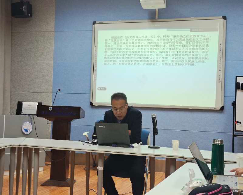 师生带来了一场题为《救亡图存:战时历史教育的民族认同教育》精彩的报告。本次“思政名师示范课”讲堂采用线上线下同步形式:左玉河教授在友谊校区老图书馆219多媒体报告厅与电玩城游戏