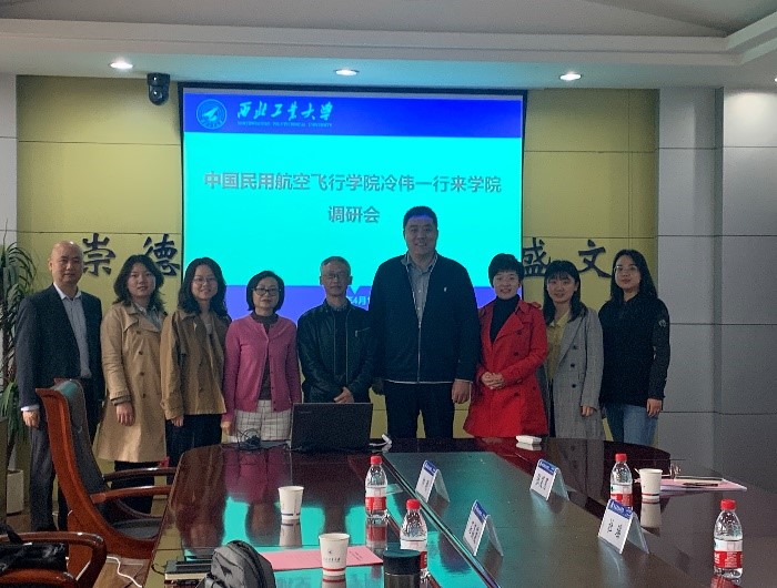 2021年4月15日上午10:00,中国民用航空飞行电玩城游戏 电玩城游戏 副院长冷伟、院党委副书记秦亚君、办公室主任石荔菠、教研室主任帅刚、辅导员李贞一行5人来电玩城游戏 开展马克思主义理论学科专业建设调研。电玩城游戏 党委副书记李刚、副院长张云龙、办公室主任杜瑶、公共课教学秘书张笑男、行政秘书刘敏热情接待了对方单位人员并在电玩城游戏 楼208开展了调研交流会。会议由党委副书记李刚主持。