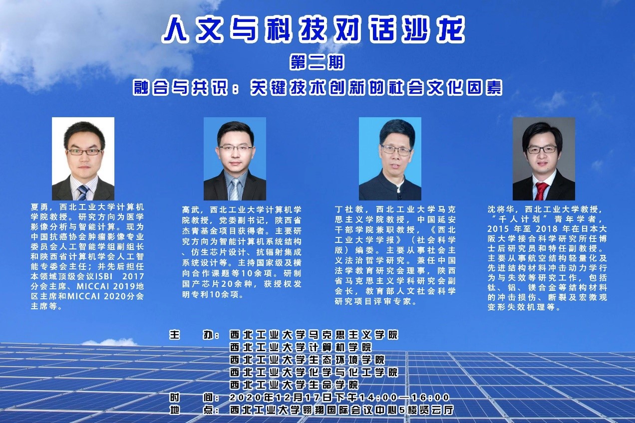 2020年12月17日下午,西北工业大学第二期“人文与科技对话沙龙”在翱翔国际会议中心成功举行,此次沙龙的主题为“整合与共识:关键技术创新的社会文化因素”。此次沙龙的参与人是计算机电玩城游戏