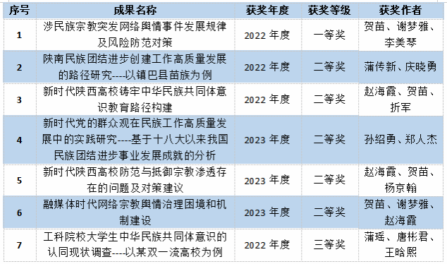 2024年初,陕西省民族宗教事务委员会公布了近2年民族宗教工作优秀调研成果获奖名单。电玩城游戏 电玩城游戏 2022、2023两年共7项成果入选,其中一等奖 1项、二等奖 5项、三等奖1项。