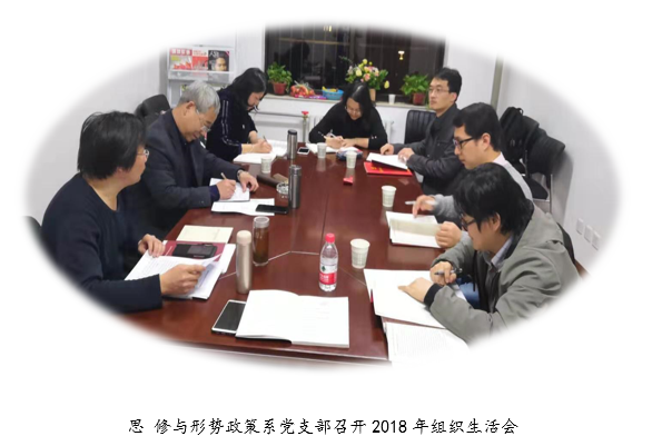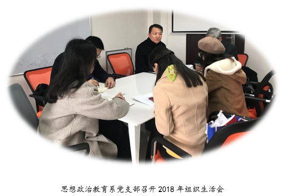 6个教工支部、3个学生党支部认真召开组织生活会、开展民主评议党员工作。召开组织生活会之前,各支部结合自身实际开展了集中学习和交流研讨。机关党支部重点学习了习近平总书记关于求真务实的重要论述;思修系党支部学习开《中国共产党支部工作条例(试行)》、《中国共产党纪律处分条例》;近现代史系党支部学习了习近平关于党的政治建设重要论述;思政系党支部书记郝保权经过了充分的研究准备工作,以讲党课的形式从党史的角度切入,结合党章发展历程中生动活泼的小故事,讲述了党章的发展历程,上党课,讲党章;马原系党支部探讨了把组织生活会的学习扩大到学术科研的交流学习,提出希望以后多开展类似组织生活会。