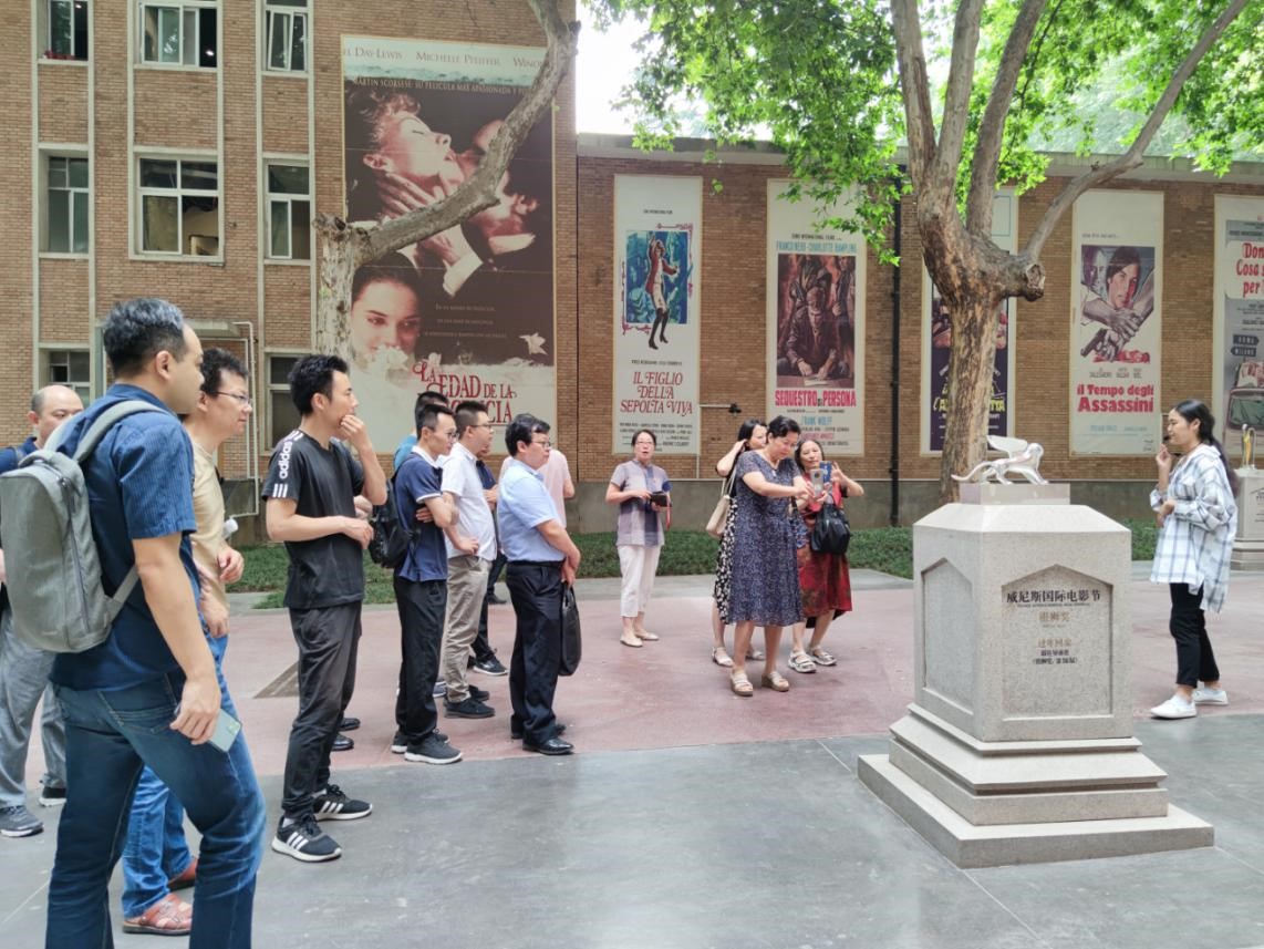在讲解员的带领下,党员教师们通过对星光大道、电影海报展及电影博物馆的考察,简要了解了西影厂的辉煌历史、电影海报的价值、电影制作的原理、服化道与电影器材等电影相关要素,充分感受到了电影制作的繁复及其文化育人的重要意义。