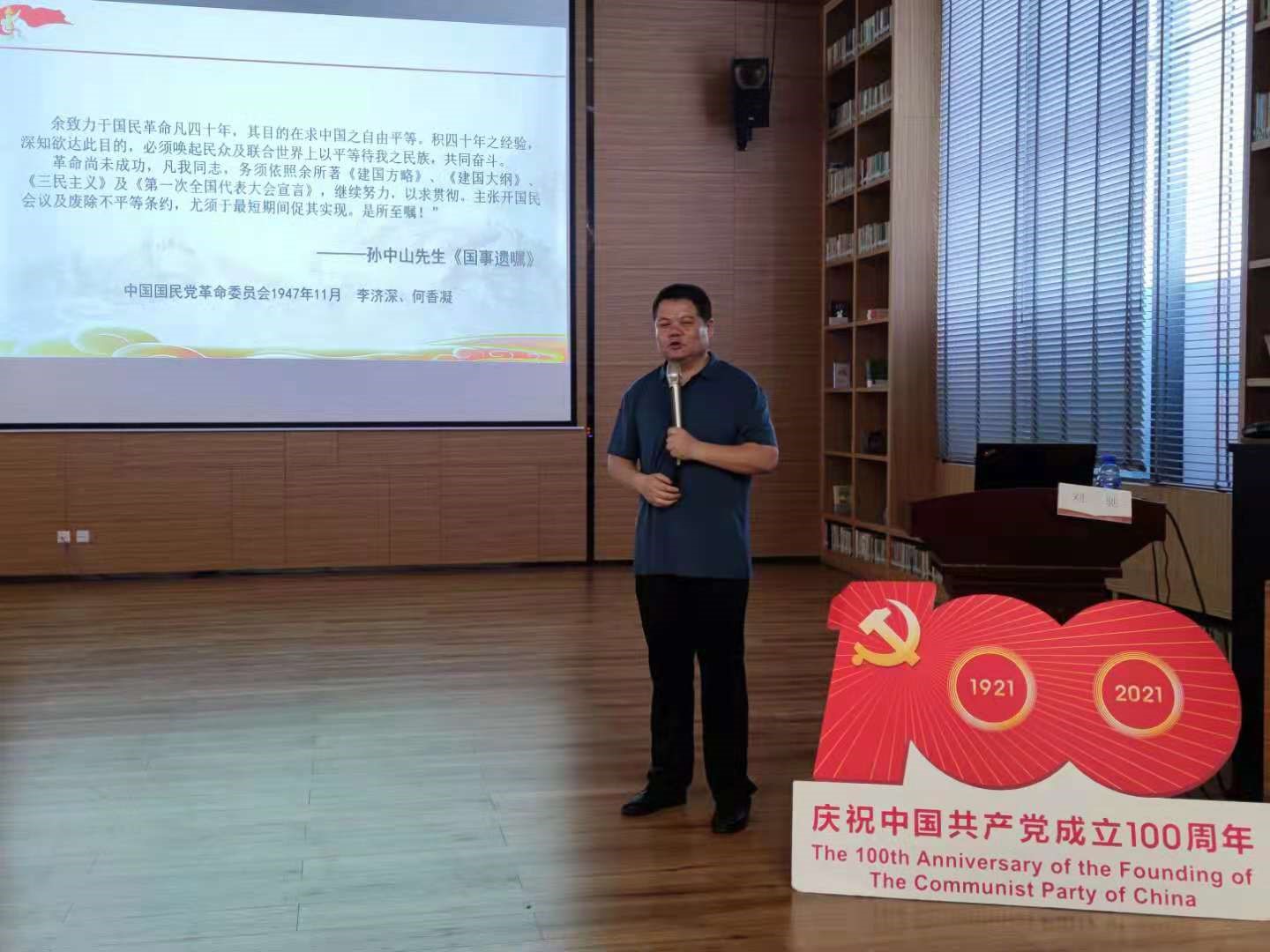 党总支书记、校党委宣传部副部长刘驰副教授为党员教师们讲授了《不忘初心使命,实现追赶超越》的电影党课。该党课以电影《建党伟业》为主体,回顾了辛亥革命到中国共产党成立期间的风云历史,系统回答了为什么中国共产党会成立、能成立的问题,结合党成立以来所取得的历史性成就,展望新时代如何不忘初心,实现追赶超越。