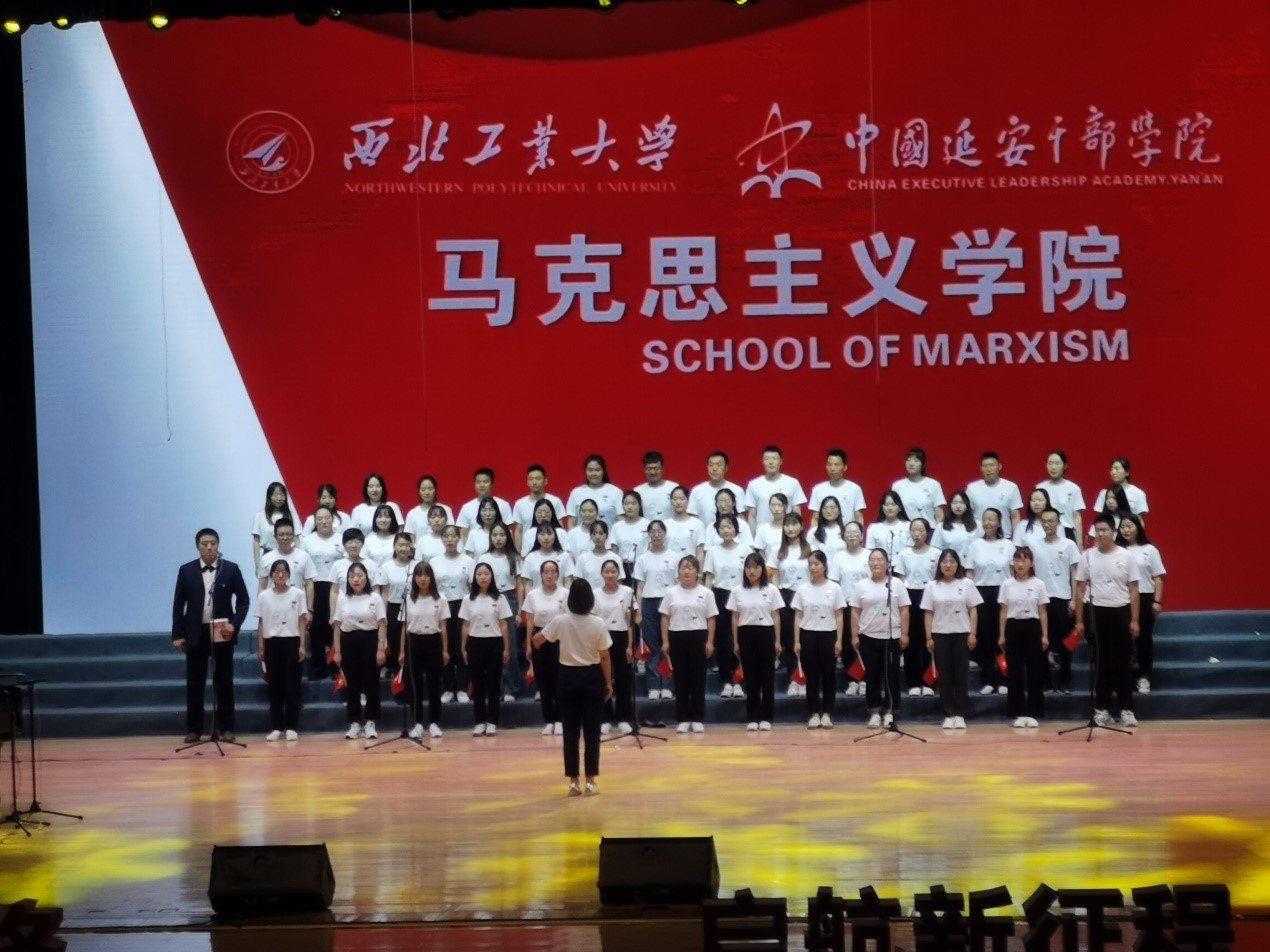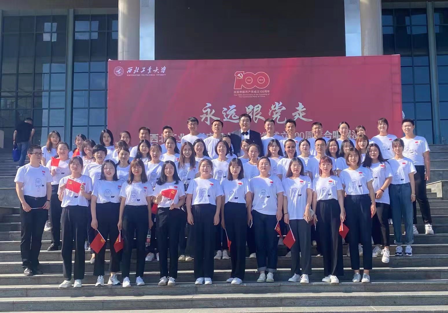 同样在6月19日,“永远跟党走”西北工业大学庆祝中国共产党成立100周年合唱展演在翱翔学生中心举行。由电玩城游戏 党委领衔,近百名电玩城游戏 师生组成合唱团,统一身着定制文化衫,手拿党旗,歌唱祖国《走向复兴》。在歌声响起前,电玩城游戏 还特别设计了朗诵《共产党宣言》的环节,以此来铭记共产党人的初心。