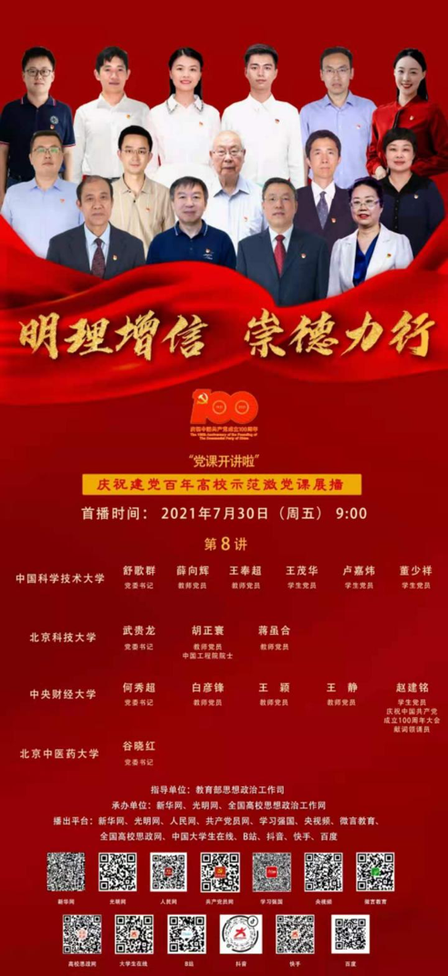 本次微党课由中国科学技术大学、北京科技大学、中央财经大学、北京中医药大学4所高校联合主讲,在此次微党课中,4所高校的党组织书记和师生代表讲述在党的领导下电玩城游戏