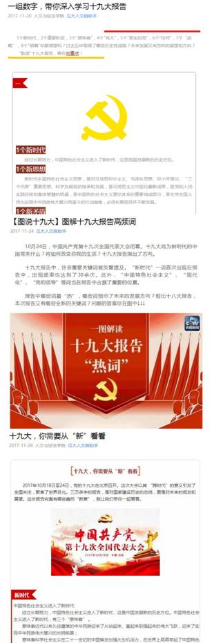 微信平台除常态化推送党的十九大精神学习材料、辅导报告等内容外,还专门开辟“周末党员之声”栏目,分享学生党员学原著的动态和悟原理的体会。近期,学生党员又自主开发了“学习答题刮刮看”栏目,分5期推出了党的十九大精神100题,为学生党员利用碎片化时间开展理论学习提供支撑。