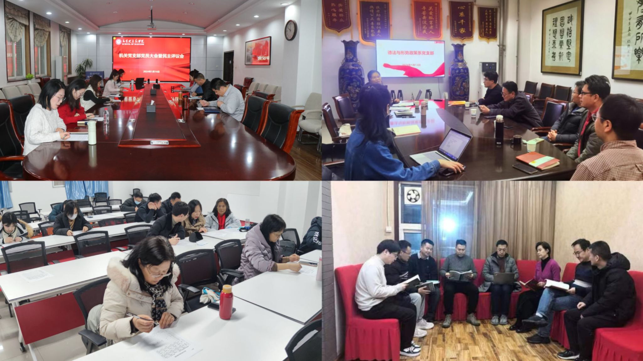 各教工党支部召开了民主评议党员的工作,在民主评议结束后进行了党员集体学习,观看《榜样8》。