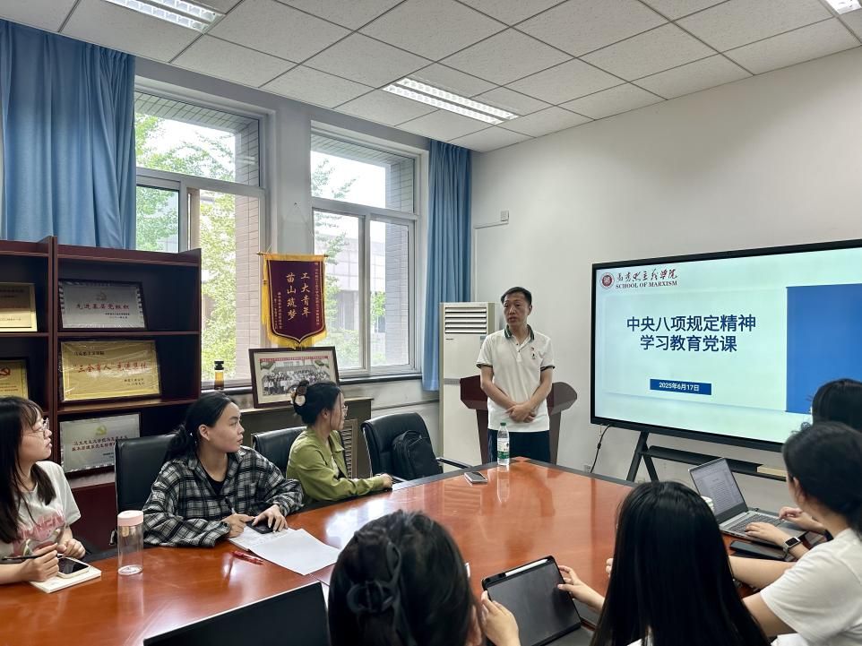 此次专题党课不仅是一次理论学习的深化,更是一次党性教育的洗礼。通过马军老师的生动讲解和支部党员的深入交流,大家进一步认识到作风建设永远在路上的深刻内涵。全体党员要始终以中央八项规定精神为镜鉴,筑牢思想防线,锤炼过硬作风,将纪律要求转化为日常习惯和行动自觉。之后,思想政治教育系师生党支部将继续以高标准、严要求推进党建工作,充分发挥基层党组织的战斗堡垒作用,以优良党风引领学风建设,为培养担当民族复兴大任的时代新人贡献力量。