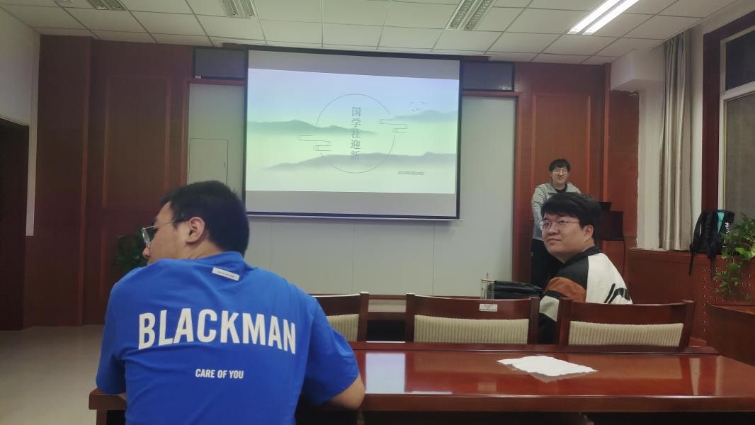 会议伊始,国学社社长张博文介绍了社团的基本概况,对新社员的加入表示热烈地欢迎,并对国学社2023年度工作计划做了详细汇报。随后在自由交流互动环节,大家交流兴趣爱好,共商社团发展要事。