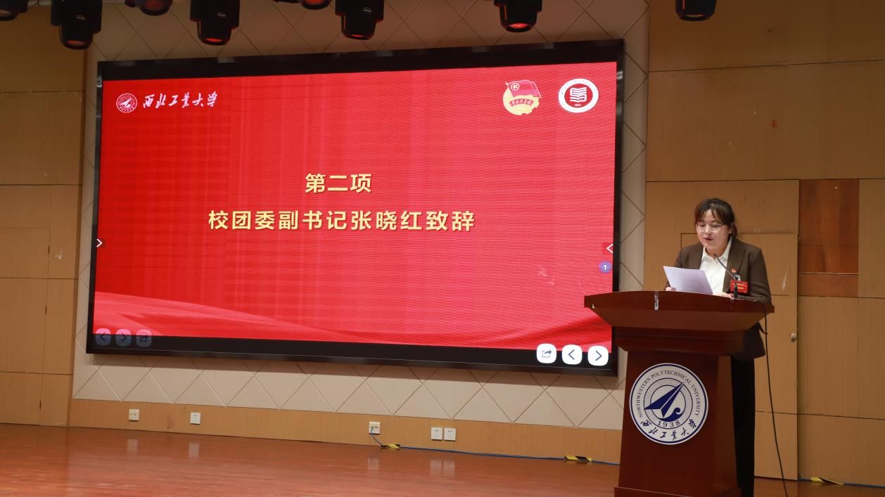 首先,西北工业大学团委副书记张晓红致辞。她代表校团委向大会的召开表示热烈的祝贺并肯定了电玩城游戏