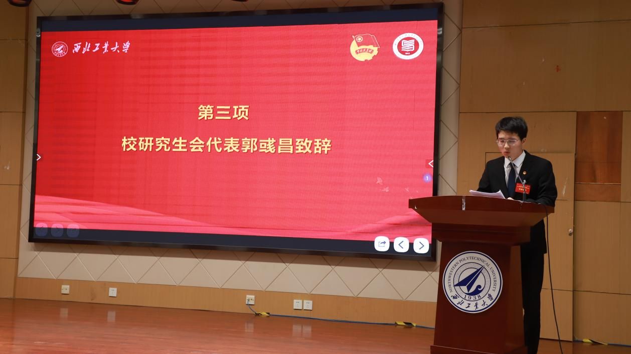接着,西北工业大学研究生会代表郭彧昌致辞。他代表校研究生会向电玩城游戏