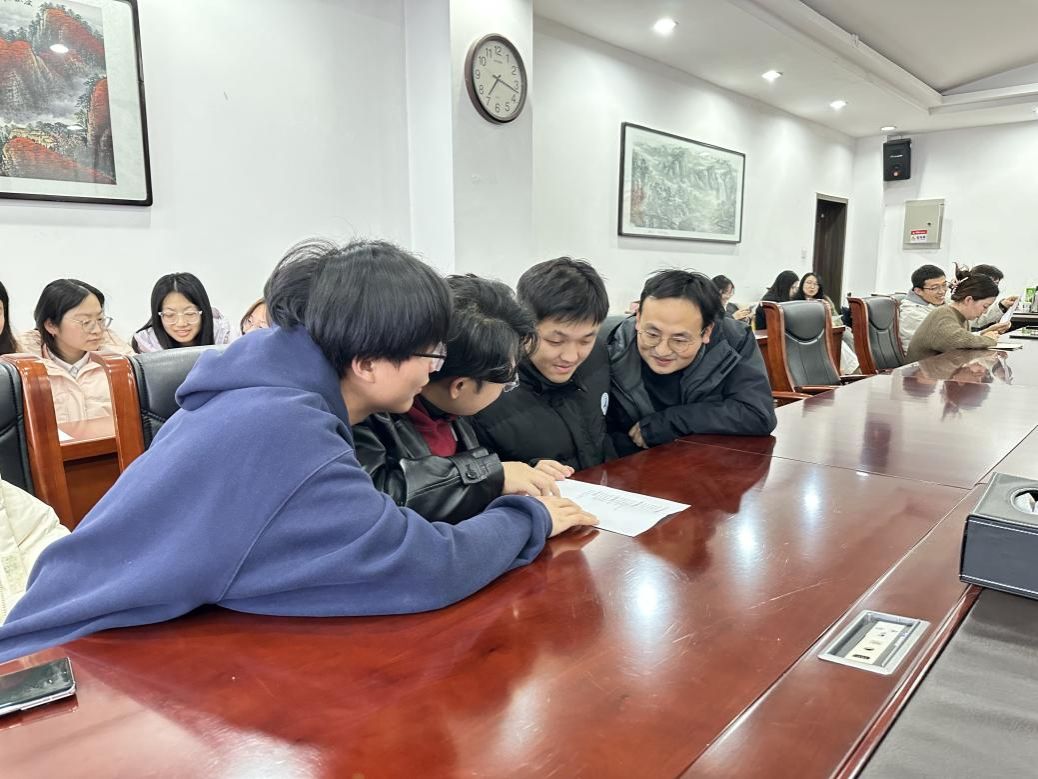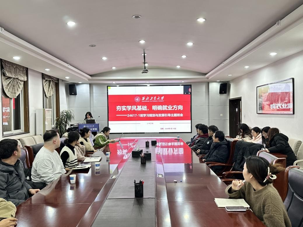 为进一步加强学风建设和安全教育,帮助同学们在关键阶段理清学业思路、做好就业规划,2026年1月15日,2024级硕士研究生24617-1班举办了“学业规划、安全教育与就业引导”的主题班会。辅导员王换、张天浩和班主任杜轶伦与全班同学齐聚一堂,共话成长。班会由孙抒祺主持。