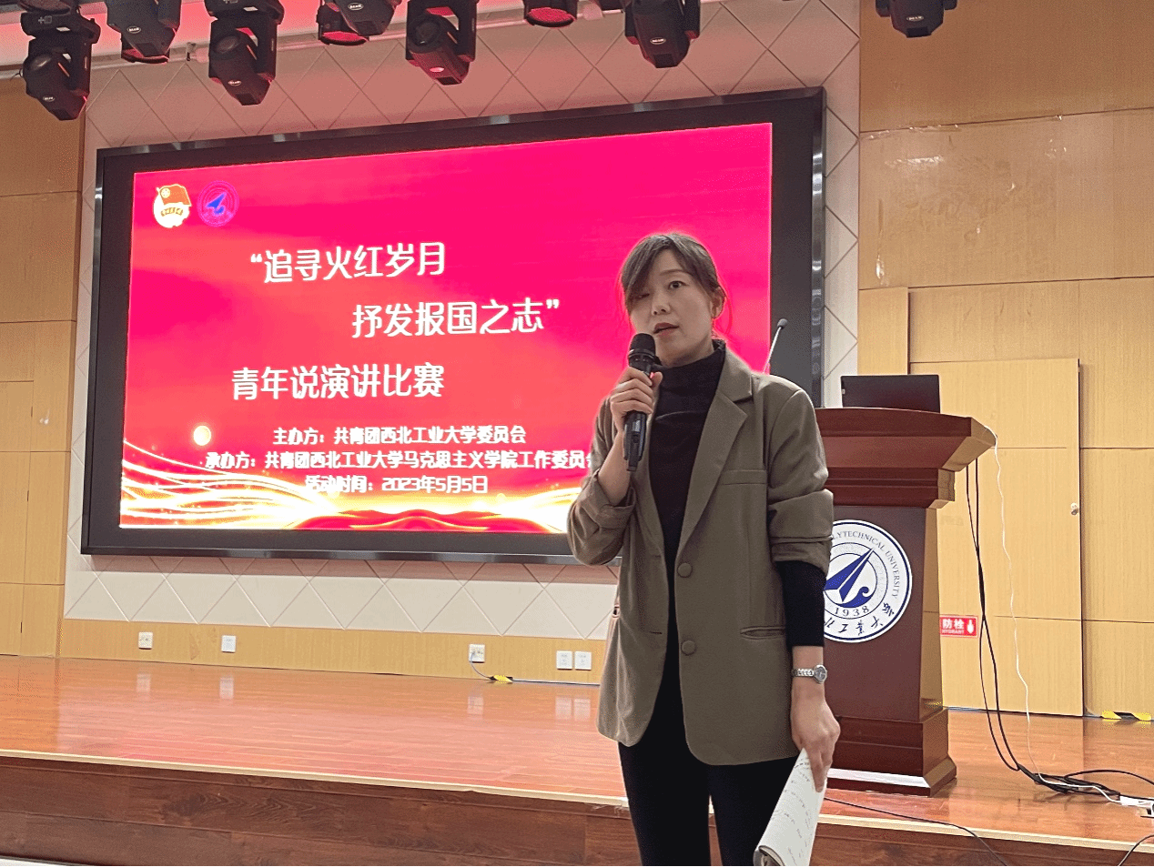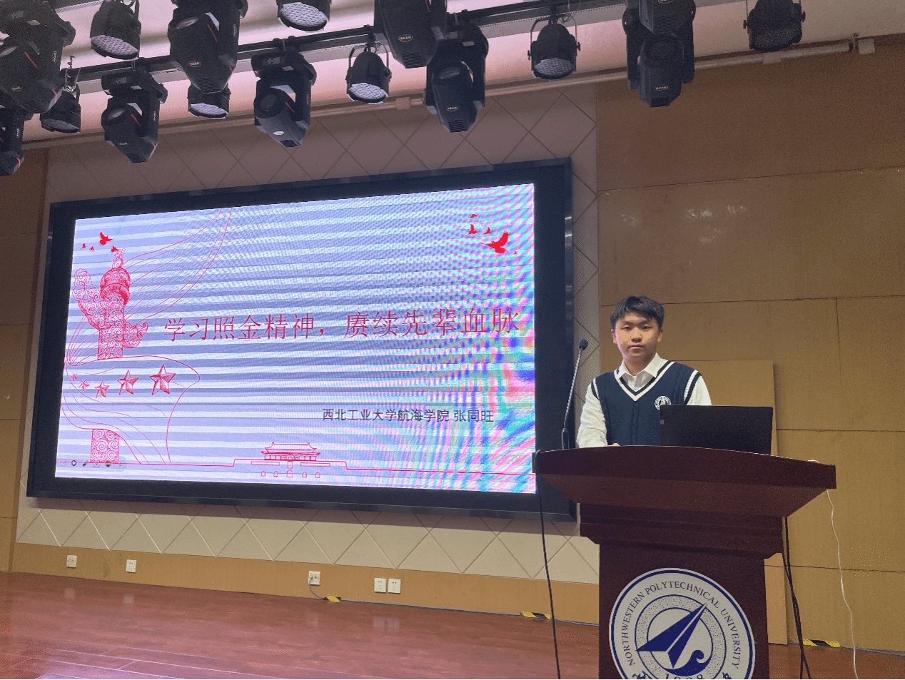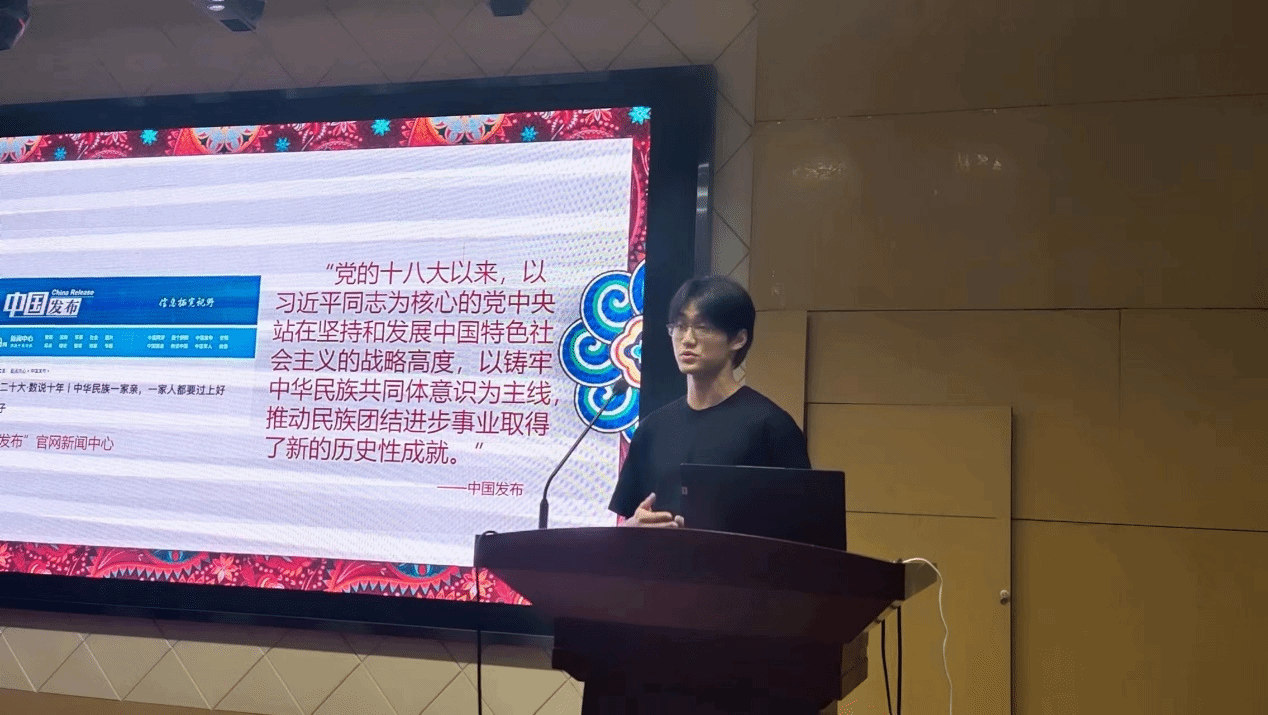 的杨文浩以西工大优秀学子麦吾兰·麦麦提敏为例,通过回顾中国脱贫攻坚战的伟大胜利,分析了新时代民族团结进步事业的有利条件,为铸牢中华民族共同体意识向青年学子发出号召——“以民族百花魂,铸中华赤子心”。