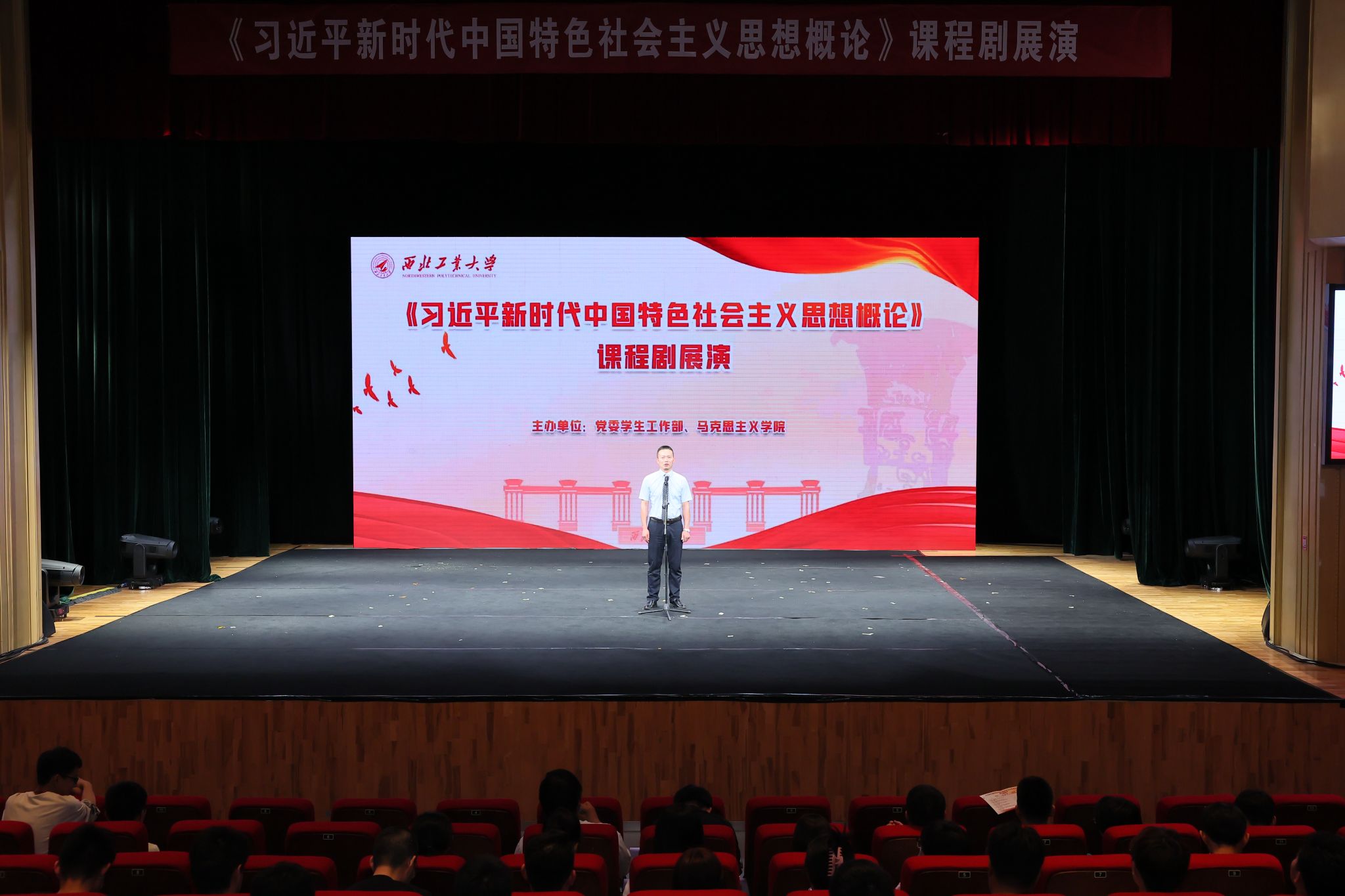思政课是立德树人的关键课程。习近平总书记指出,思政课的本质是讲道理,要注重方式方法,把道理讲深、讲透、讲活。为更好地发挥思政课启智润心、培根铸魂的关键作用,西北工业大学党委积极探索思政课改革创新。6月8日晚,由校党委学生工作部和电玩城游戏 共同举办的《习近平新时代中国特色社会主义思想概论》(以下简称《概论》)课程剧在长安校区南山艺堂首次展演,把课堂搬上舞台全校400余名师生现场观看。