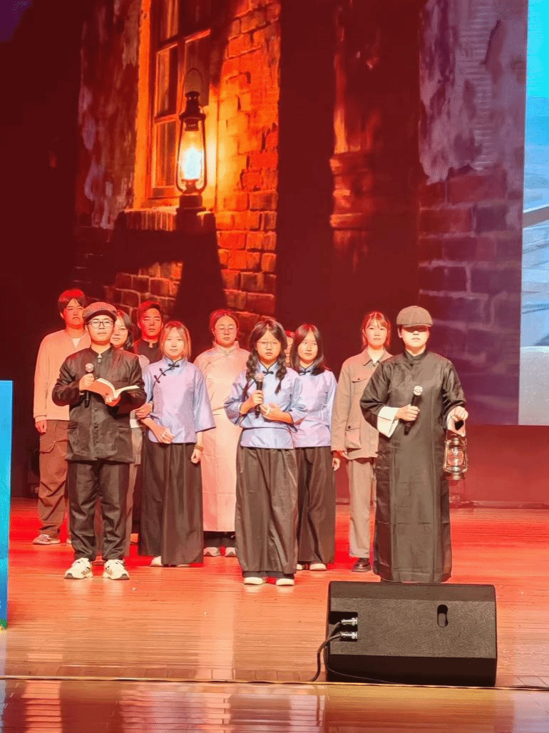 班级的展演节目匠心独运,以“情景剧+合唱”的融合形式深情呈现。当1938年古路坝的麻油灯火遇上2025年电玩城游戏