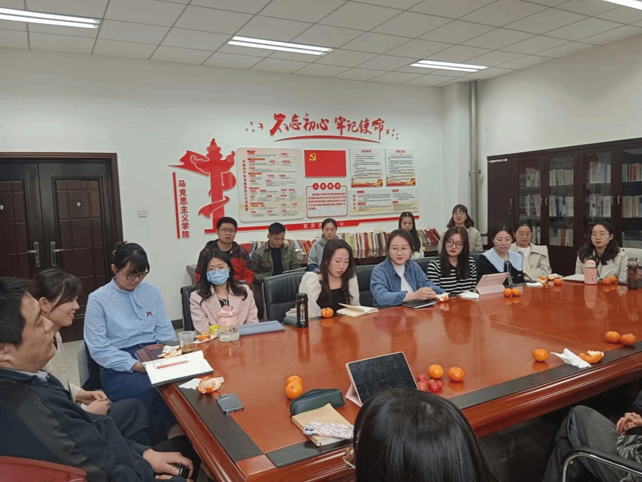 党委副书记李刚老师和毕业班辅导员王换老师与2023届毕业生以及研二、研一部分学生代表共同话未来、谈初心。